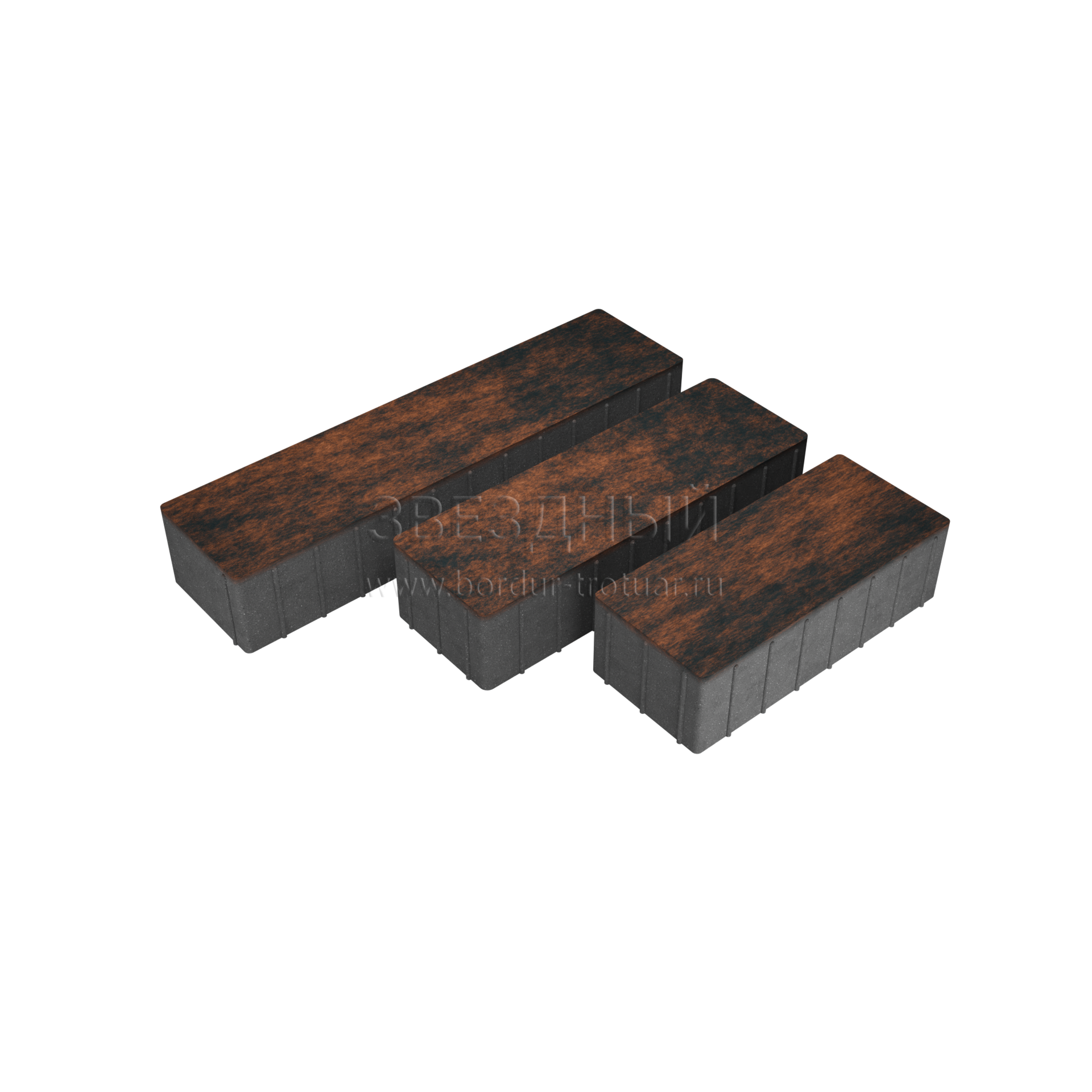 Тротуарная плитка "Ригель Трио" 80 мм (Color Mix) (Мокко) ГОСТ 17608-2017 (тяжелый бетон)