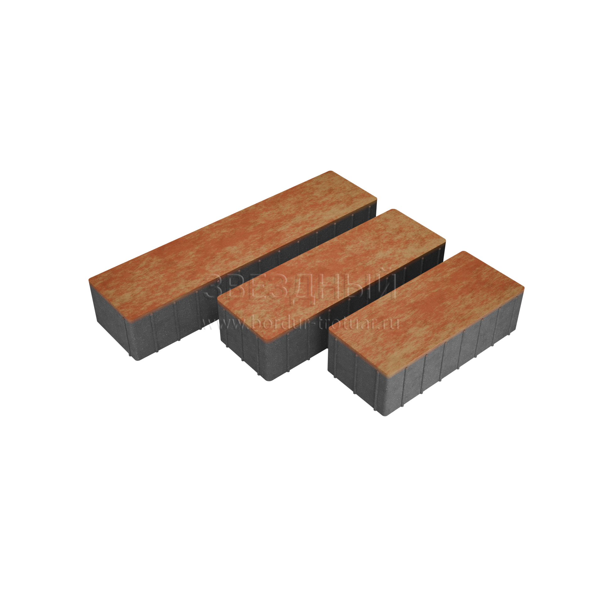 Тротуарная плитка "Ригель Трио" 80 мм (Color Mix) (Огненный опал) ГОСТ 17608-2017 (тяжелый бетон)